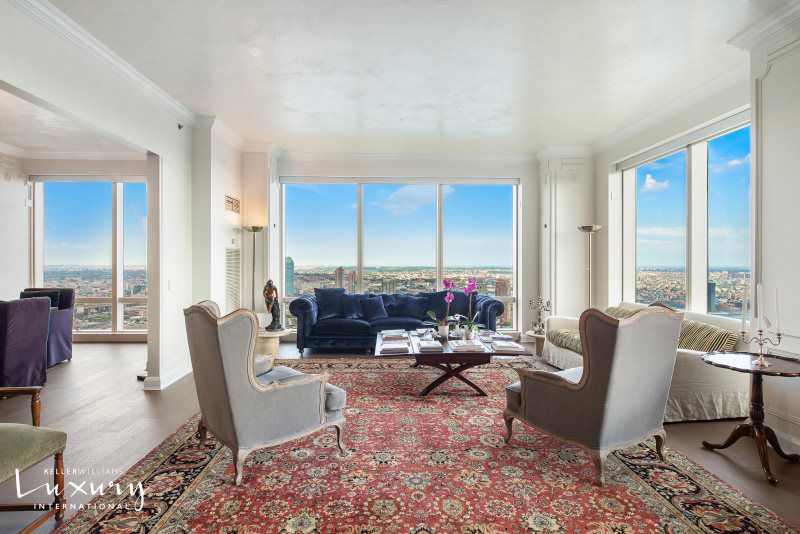 Breathtaking City and East River views abound from this spacious 3 bedroom, 3.5 bath residence on the 58th floor of Trump World Tower. This elegant, 2,857 sq. ft. (approx.) apartment in mint condition, occupies the southeast corner of the building, has sweeping dramatic views and receives excellent sunlight. It has a fantastic layout ideal for entertaining which features a large foyer, a spacious corner living room, a formal dining room, and a lovely windowed eat-in-kitchen with granite counters and GE Monogram appliances. The apartment also features a luxurious master bedroom with a master bath that includes a tub, stall shower and double sinks. Two additional bedrooms with en-suite baths, one of which can also serve as a library/den, a guest powder room, 10-foot ceilings, beautiful new hardwood floors and a washer/dryer round out this sophisticated space.