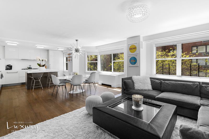 This one-of-a-kind, impeccably renovated three bedroom, two bathroom home is a masterpiece in mint condition ready for one to move in with ease. Upon opening the front door of this apartment one is greeted by a welcoming formal entry with the living, dining and kitchen areas to the south, privatized bedroom wing to the east as well as a mud room, storage space and full bath to the west. The open layout living, dining and kitchen area pulls one into this space with its airy feel, luxurious presence, abundance of southern light flooding the room from many windows and pretty-tree lined view. This part of the home is grand in size yet still feels cozy with the living area tucked to one side, the dining perfectly positioned between the kitchen and living area and the kitchen in its own nook on the other side. This kitchen is immense with a huge island, an abundance of counter and cabinetry space, a deep sink and top-of-the-line Miele appliances built into custom white lacquer cabinetry.